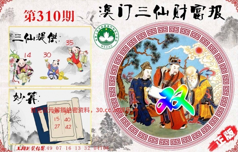 310期:五尾中特💯【34569尾】💯开:虎16中